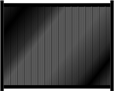 With Duracron Paint Finish in Semi-Gloss Black, this fence system uses our in house designed 6'' grooved aluminum fence boards which uses our board locking system that requires no on site cuts due to its expanding and contracting panel size for an easy installation, this is a Vertical board fence