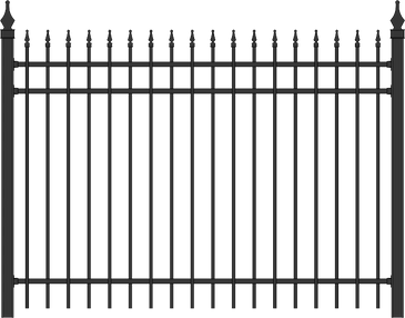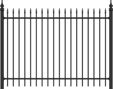 Duracron Paint Finish in Semi-Gloss Black, Commercial Brown & White -5/8'' x 5/8'' Pickets, 1''x1'' Rails Installed on 2'' or 2 1/2'' Aluminum Fence Posts -Available in 3,4,5 & 6 Feet High (optional spiral cap displayed, regular pyramid cap comes standard)